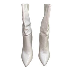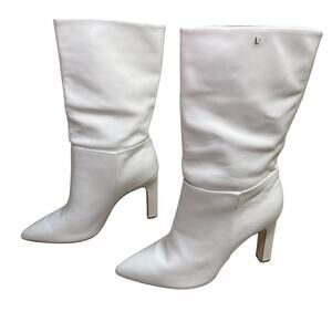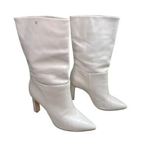 Larroude Cindy Heeled Pointed Toe Boot In Ivory Leather Size 10