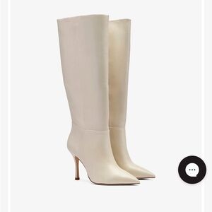 Larroude Cream Heeled Boots Knee-High Stiletto NWT