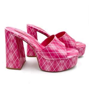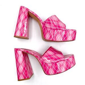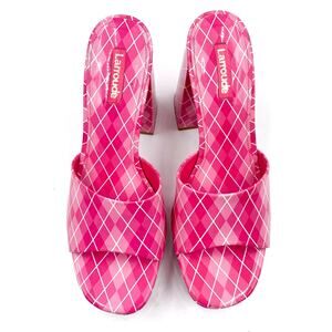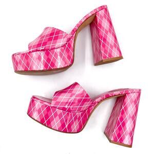 Larroude Dolly Argyle Platform Mule Pink Patent Sandals Block Heels Sz 9