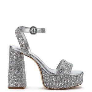 Larroude Dolly Silver Crystal Platform Sandal Heels. Sz: 9.5