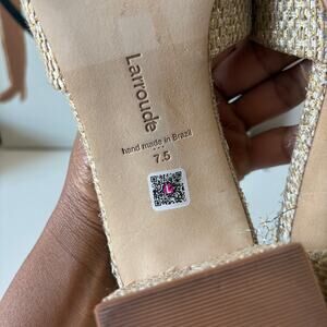 Larroude Flora Woven Raffia Gold Beige Slip On Block Heel Mule Sandals Size 7.5