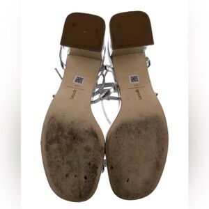 Larroude Gio Silver Block Heels Sandals Size 9.5 Patent Leather Ankle Strap