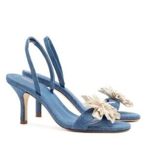 Larroude Hibiscus Slingback Flower Sandal in Denim Size 6