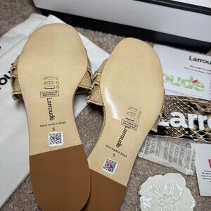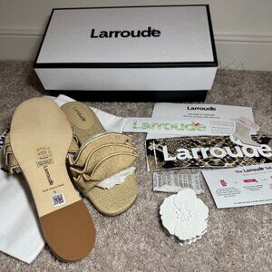 Larroude Ivy Ruffle Raffia Slide Sandal