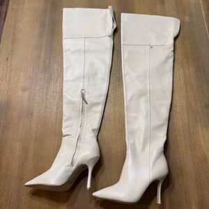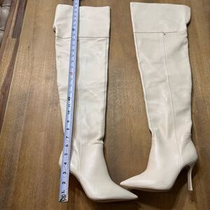Larroude Kate Over The Knee Point Toe Boot Ivory Leather Stiletto Size 6