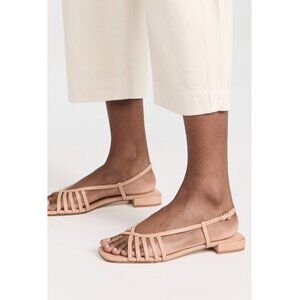 A strappy slingback design creates the peekaboo silhouette of a contemporary-chic sandal grounded by memory foam cushioning.