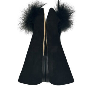 Larroude Lee Pom-Pom Black Suede Flats Womens Size 7.5 Pointed Toe New $295
