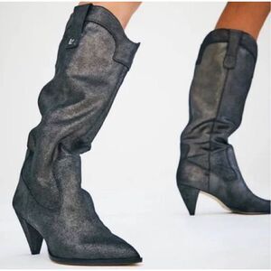 Larroude Louise Graphite Metallic Oil Shiny Cowboy Boot NWOB Size 6