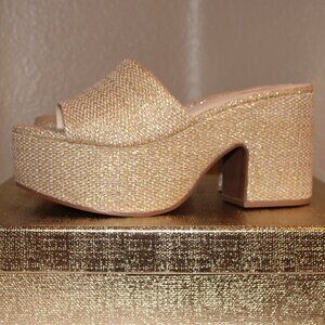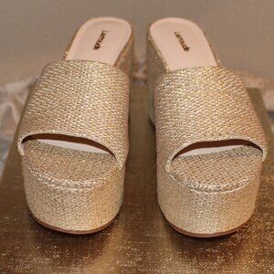 Larroude Miso Platform Sandal - Metallic Raffia Gold - size 10