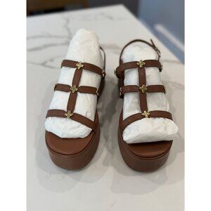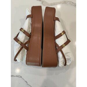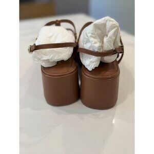 Larroude NIB Harmony Platform Sandal in Antique Kid Skin Caramel Size 9