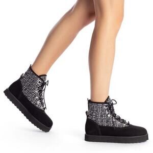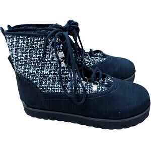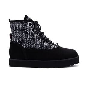 Larroude NWOB Vail Ankle Boots Black Gray Tweed Nubuck Size 8 Lace Up Closure