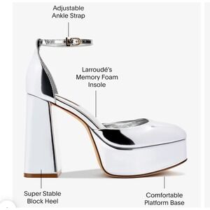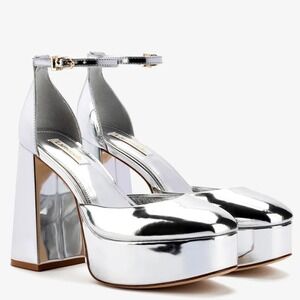 Features: Ankle Strap, Platform, Block Heel, Metallic, Adjustable Strap