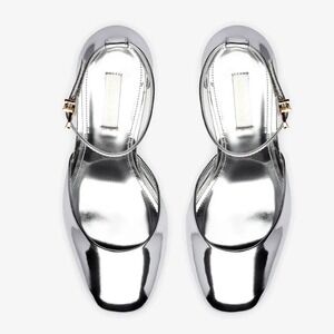 Larroude Size 9 Silver Specchio Leather Platform Heels Ari Pumps Womens $350