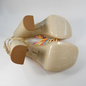 Larroude Valerie Knotted Satin Platform Sandals Sz 8.5 Multi 140MM Heel NEW $330