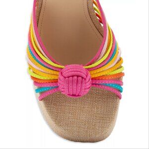 The Valerie sandals from Larroudé boast a multicolored knotted upper and a raffia platform sole.