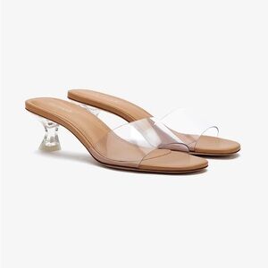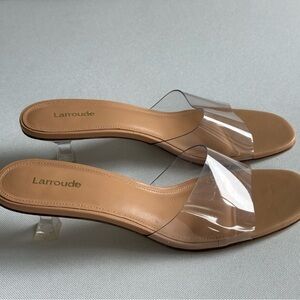 Larroude Vivi Lucite Mule In Tan Leather and Vinyl