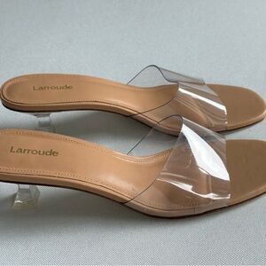 This goes-with-everything Larroudé sandal brings a sexy new twist to the classic silhouette. See-through vinyl brings new life to this irresistible pair that you'll want to wear with nearly everything.
