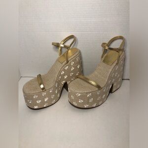 Larroude Wanda Daisy Gold and Cream Floral Platform Sandals 6.5