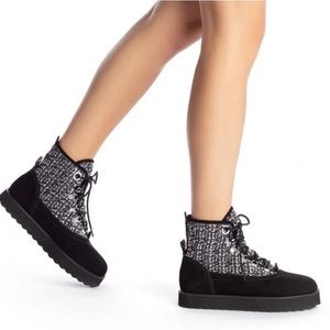 Larroude Women’s Vail Black Suede Tweed Boots NWOT Size 9