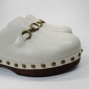 Larroude Zuzi Bit Mule Clogs Slip on Size 6 Ivory Cream Leather Wooden Studs NEW