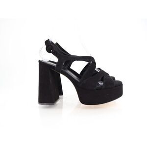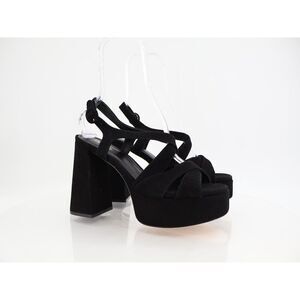 Larroude Bee Platform Sandal Black Suede Size 10 Chunky Block Heel