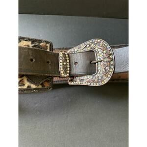 Larry Clements Leopard Belt M/L Leather Studded Handcrafted Wide Western Boho