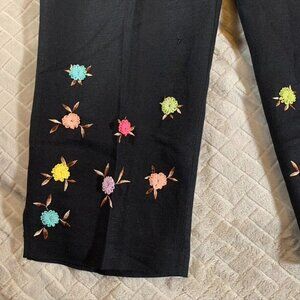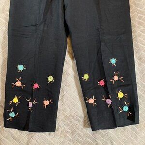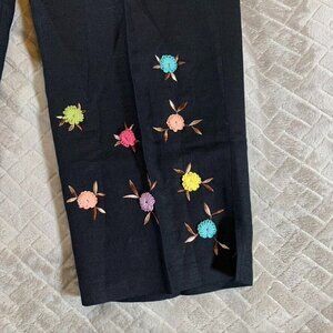Larry Lavine Womens 10 Linen Blend Pants Cropped Black Floral Embroidered Lined. No stains or holes.
