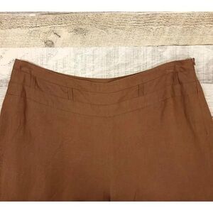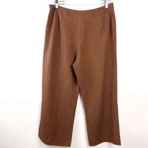 Larry Levine Brown Linen Blend Cropped Wide Leg Pants