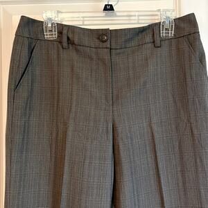 Larry Levine charcoal gray trousers, size 8. Stretchy fabric, subtle plaid print, front and back pockets. In excellent used condition.