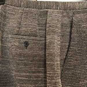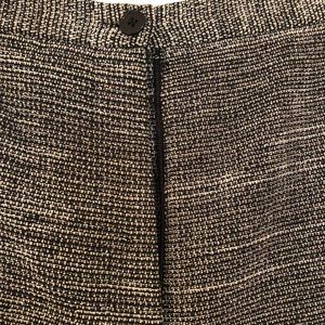 Larry Levine Pant Suit. Classic Charcoal - gray, black and white pattern. Square neck collar. Black buttons with mother of pearl centers. Coat flairs slightly. Pants have front side pockets and one back pocket, front zipper and button. Suit liner is black. Size 12. Suit is in great condition.