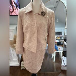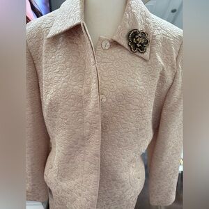 Elegant cream blazer with intricate details Features a stylish brooch on the collar. Matching skirt comes with it . Perfect for formal occasions.