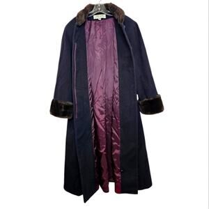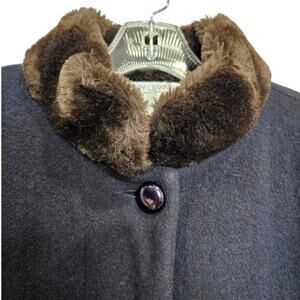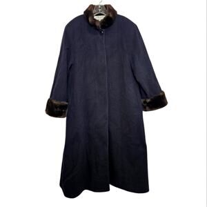 Larry Levine Designs Long Wool Blend Faux Fur Collared Hidden Button Coat Sz 12
