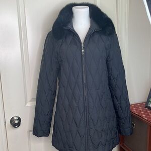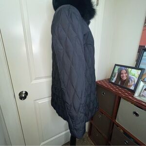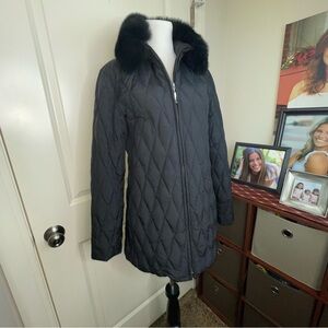 Larry Levine Down Quilted Coat Fox Fur Collar Mid Length