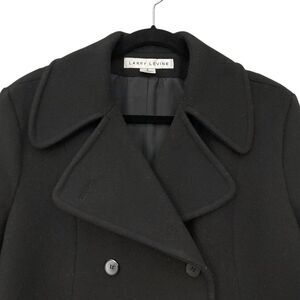 Larry Levine Pea Coat Womens 8 Black 100% Wool Double Breasted Dark Academia