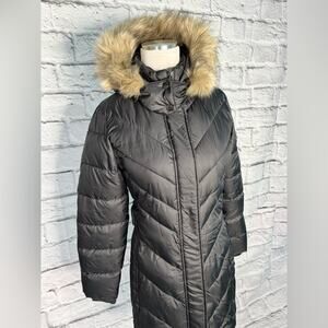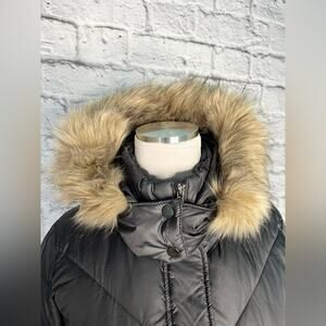 Larry Levine SALE down and feather faux fur hooded puffer coat new size XS