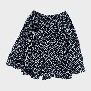 Larry Levine Size 6 Skirt A Line Flare Black White Geometric Pattern Linen Blend