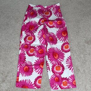 Larry Levine Sport Stretch Cropped Floral Pants Pink & White Size 6