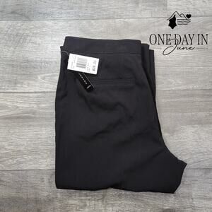 These sleek black beauties from Larry Levine cut through the chaos of your wardrobe like a sharp knife through butter, delivering that perfect straight-leg silhouette that transforms any ordinary Tuesday into a statement of pure sartorial rebellion. The fabric blend moves with you like liquid midnight, stretching and breathing as you navigate the wild terrain of boardrooms, cocktail parties, or wherever the madness of modern life takes you. Brand new with tags still attached, these pants are your ticket to looking devastatingly put-together while the world spins wildly around you.