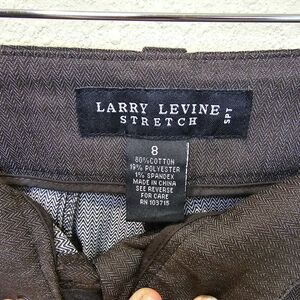 Larry Levine Stretch Cuffed Brown Herringbone Trousers Size 8