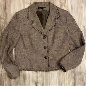 Larry Levine Suits 12 Brown Tweed Raw Edge 3-Button Blazer IMMACULATE