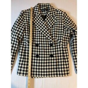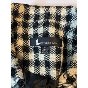 Larry Levine Suits Wool Blazer Jacket Women 14 White Black Check Double Breasted