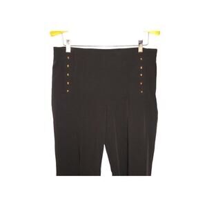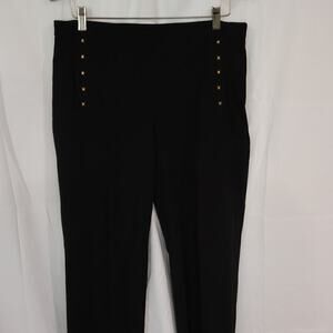 Larry Levine Sz 12 Dress Black Pants Women Faux Brass Sequins in Two Rows on Front. No pockets. Hidden zipper. Inseam 31.5" Width at waist 17.5"