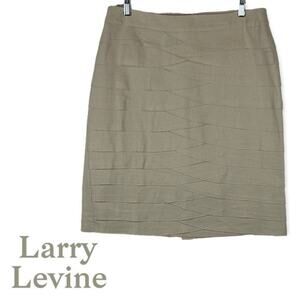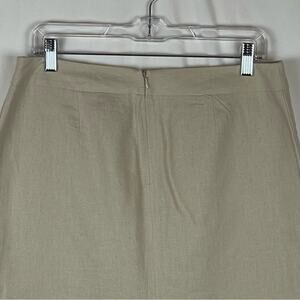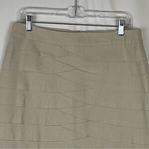 Larry Levine Tan Linen Blend Scalloped Cottage Coastal Grandma Skirt Size 10