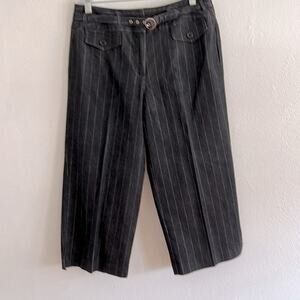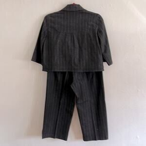 Larry Levine Two Piece Gray and White Pin Stripe Short Sleeve Pant Suit PS
