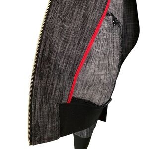 Heather Black to Gray color with red accents on the inside.
