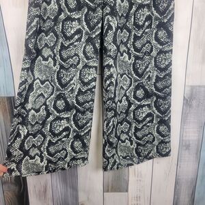 Larry Levine Wide Leg Trousers Pants Black Gray Snake Print Size Medium