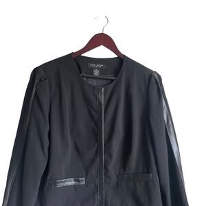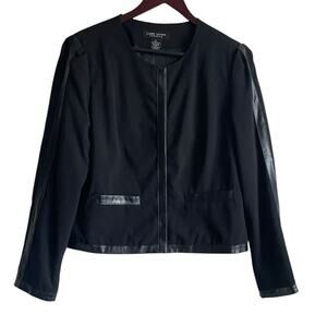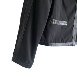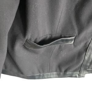 Larry Levine Women Jacket L Black Faux Leather Trim Blazer Career, Classic Retro