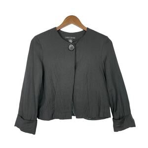 Larry Levine | Women's Black Linen Blend Single Button Chic Cropped Jacket