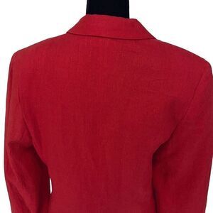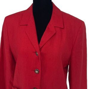 Larry Levine Womens Blazer Jacket Long Sleeve Linend Lined Pocket Lapel Notch Collar Button Up Closure Red/Crimson Size 6