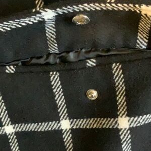 Very nice Larry Levine double breasted black and white windowpane pattern coat with lots of pretty details. There is a half belt on the back and 2 pockets on the front.